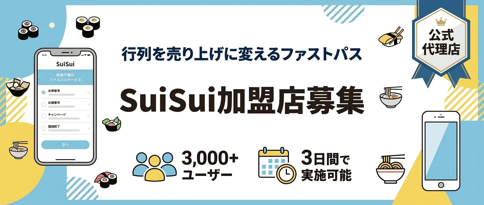 飲食店経営において「行列」は繁盛の証である一方、深刻な機会損失とクレームのリスクも含んでいます。もし、その「ただ待っているだけの時間」を、店舗の新たな収益源に変えることができるとしたらどうでしょうか。 日本初となる飲食店特化型の優先入店サービス「SuiSui」は、お客様にファストパス(優先入店権)を販売することで、席数を増やすことなく客単価を向上させます。順番待ちシステムが「行列を整理するためのコスト」であるのに対し、SuiSuiは「行列から利益を生み出すツール」です。導入費用は一切かからず、今の行列がそのまま明日の追加利益へと直結させる最新システムです。